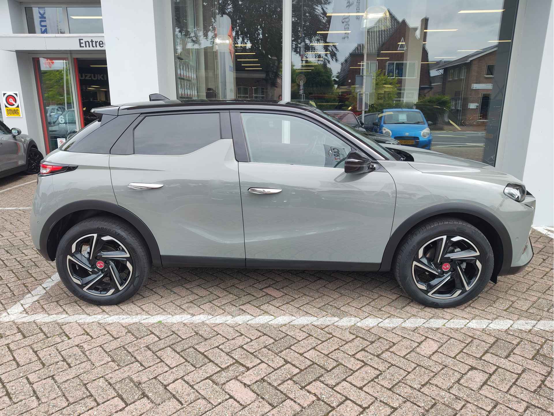 Zeer fraaie, perfect rijdende en uiterst comfortabele DS3 Performance Line+, wat ons betreft misschien wel de mooiste B-segment crossover die er is. DS blinkt altijd uit in pure klasse: prachtig materiaalgebruik, heerlijke stoelen, stille interieurs en bovendien ook altijd onderscheidende designs. Deze luxe Performance Line+ uitvoering is o.a. voorzien van een winterpakket incl. stoelverwarming, een parkeercamera, een digitaal tellerdisplay, keyless entry en nog heel veel meer. Wij leveren de DS af inclusief beurt, 1 jaar BOVAG garantie, een volle tank en een volledige technische controle.