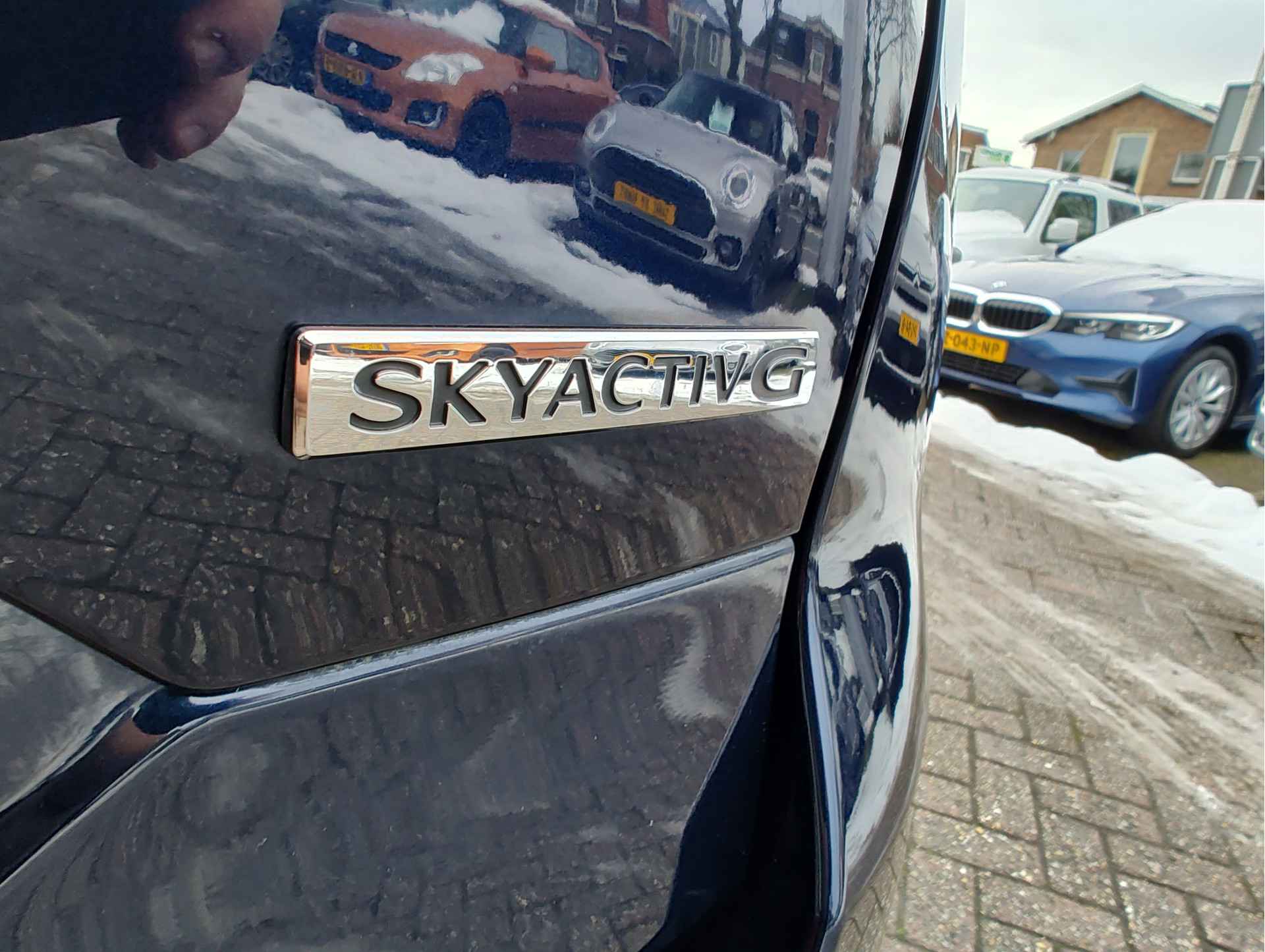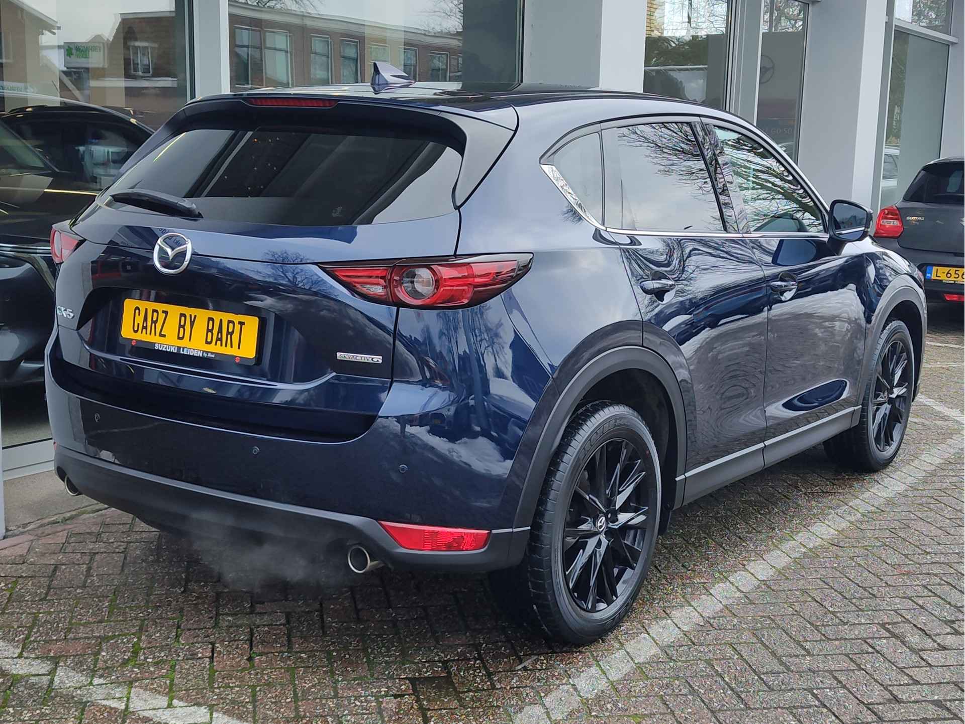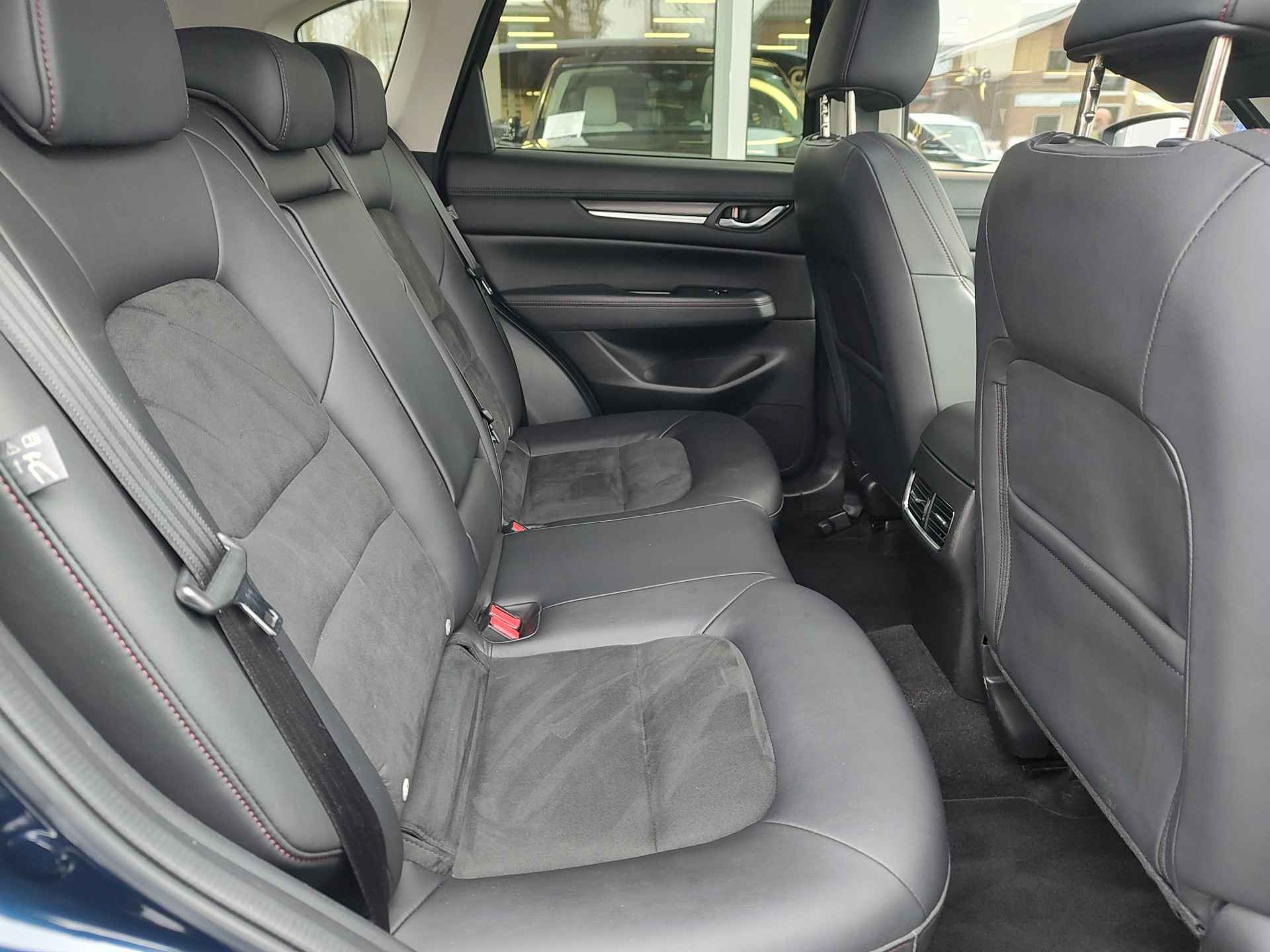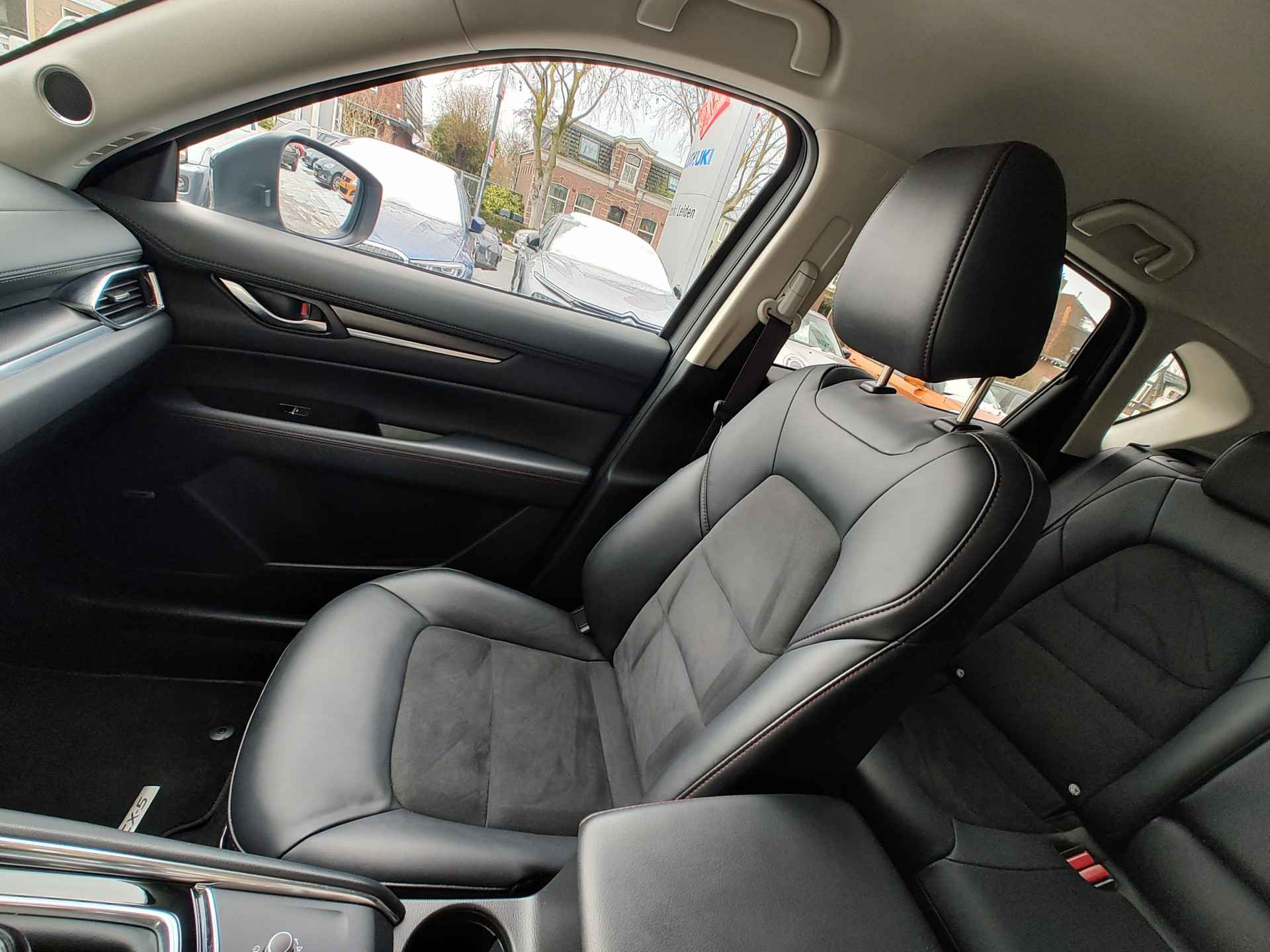 Bijzonder fraaie, in topstaat verkerende Mazda CX-5 met de betrouwbare 2.0 liter SkyActiv-G motor, die dankzij de potente hoeveelheid van 165PK deze auto een vrij sportief karakter geeft. Het is een ouderwetse 2-liter, geen gedoe met driecilinders of turbo's. Heerlijk! Topluxe uitvoering, de Homura, onder andere voorzien van een head-up display voor infoprojectie in de ruit, stuur- en stoelverwarming, keyless entry, een rondomzicht parkeercamera in HD, halflederen stoelen met alcantara binnenbaan, en nog veel meer. Rijklaar aan u geleverd zonder extra kosten, maar inclusief 1 jaar BOVAG garantie, een volle tank en een onderhoudsbeurt!