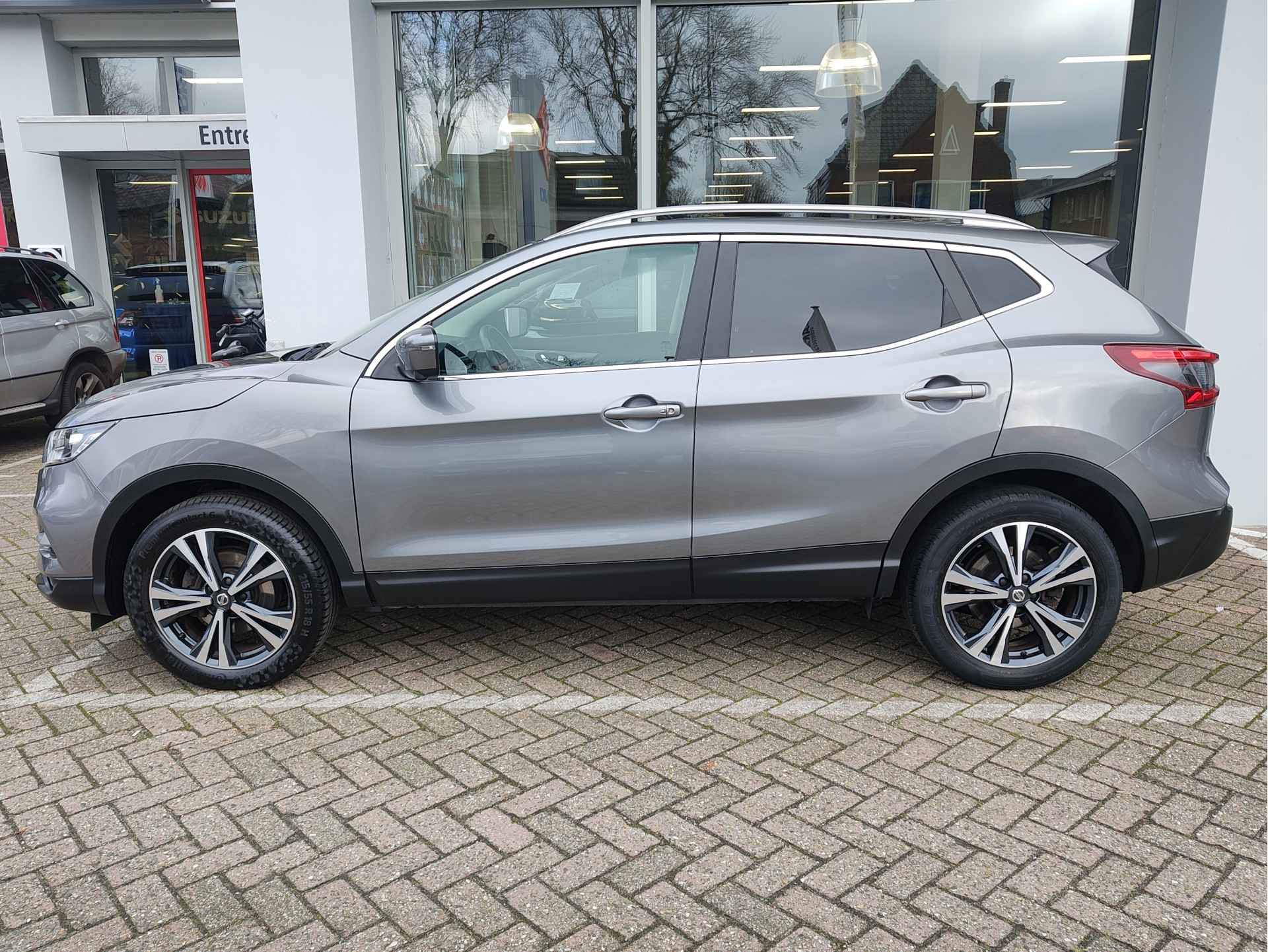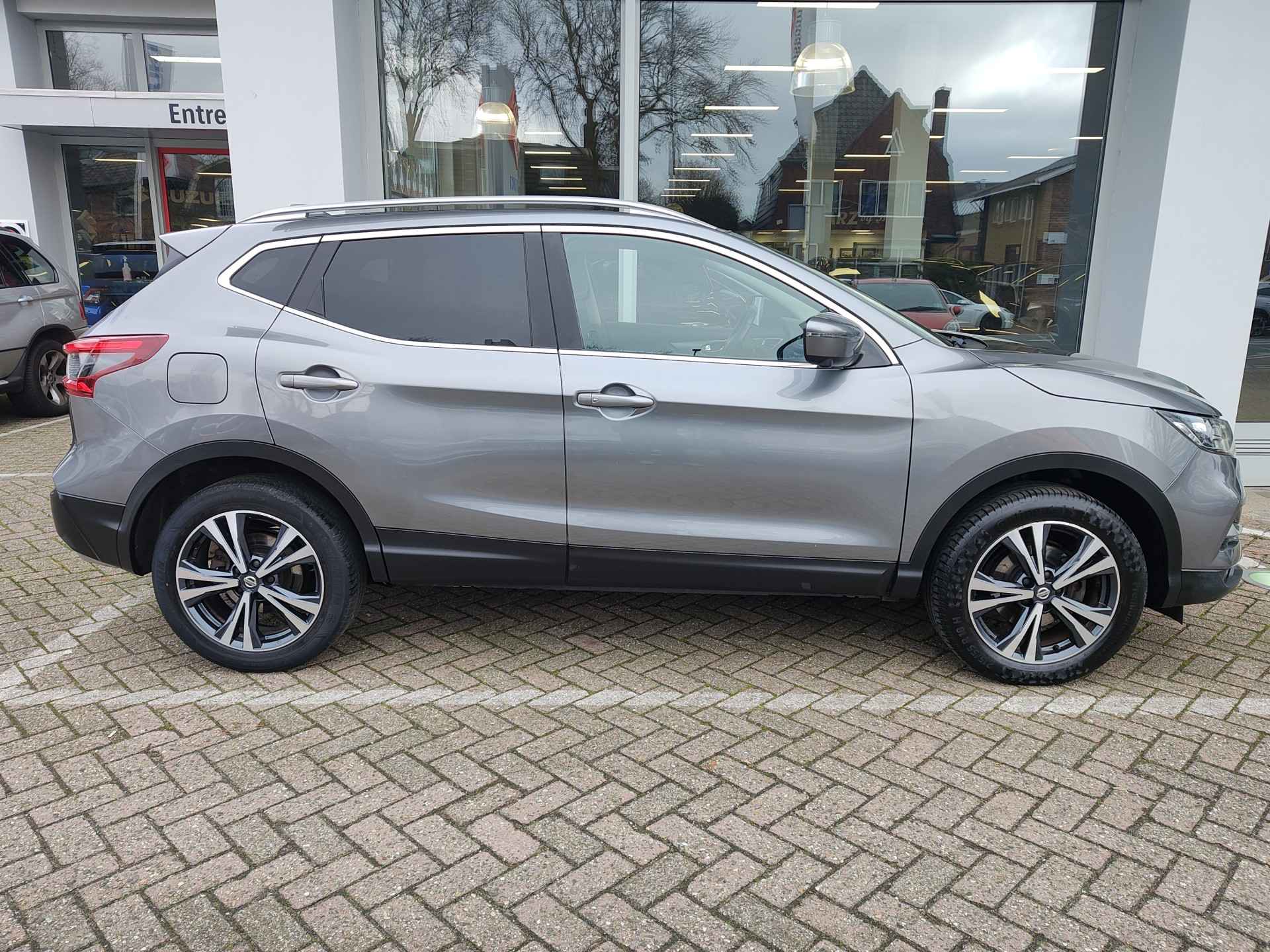 Perfect verzorgde en bovenal ook zeer goed rijdende Nissan Qashqai, misschien wel de grootste hit van Nissan in de afgelopen 20 jaar. En dat is niet verwonderlijk, want de Qashqai biedt veel ruimte en comfort voor een normale prijs. En dat weten klanten te waarderen! Deze auto - met distributieketting - is heel goed onderhouden en komt met een hoop luxe, denk daarbij aan een grootlichtassistent, automatische verlichting, een rondomzicht camera, cruise control, keyless entry en nog veel meer. Deze auto komt met 1 jaar BOVAG garantie en wordt rijklaargemaakt middels o.a. een onderhoudsbeurt en een nieuwe APK!