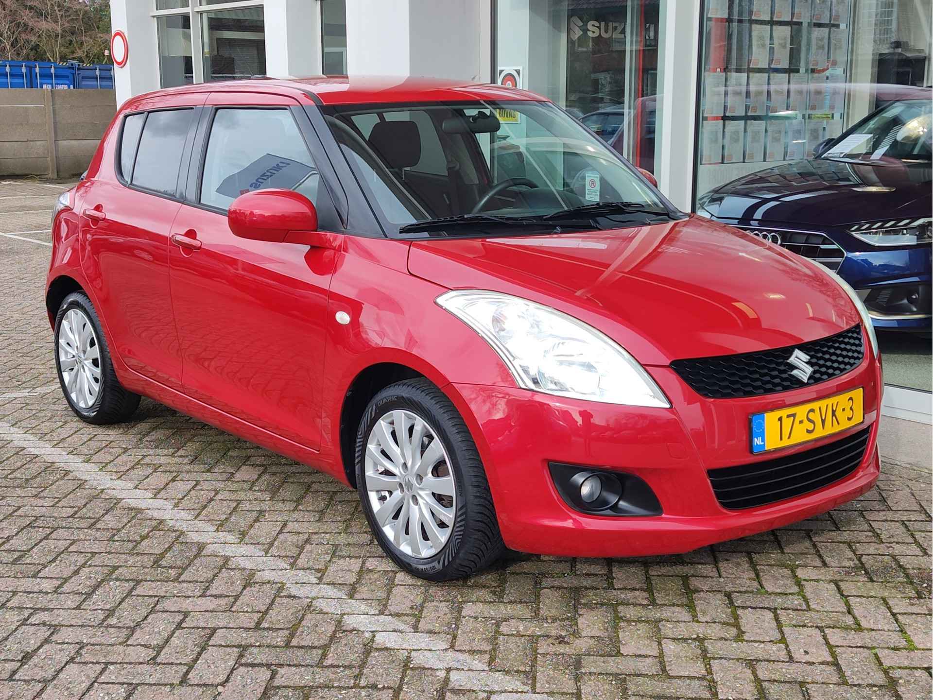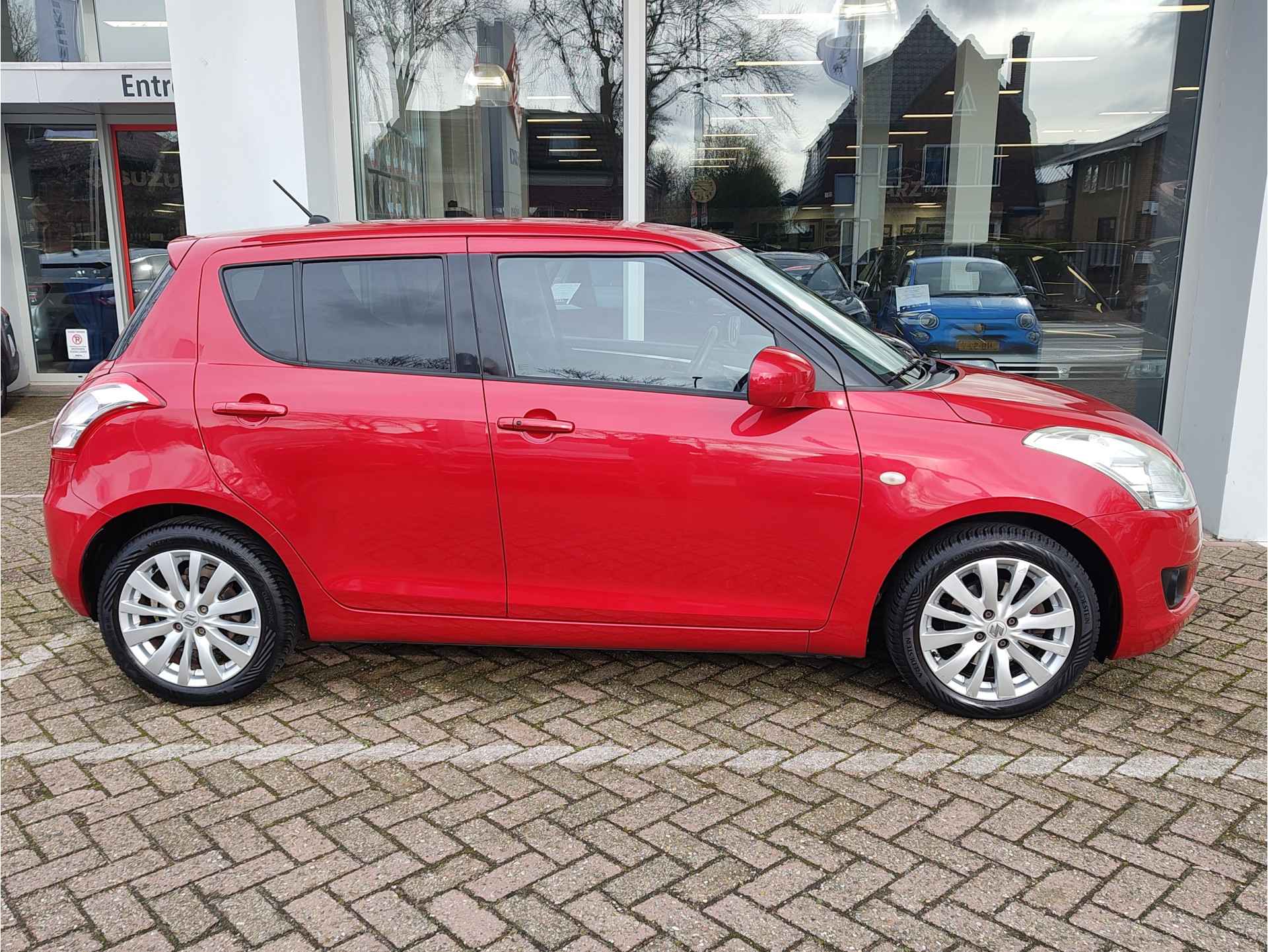 Zeer leuke, goed rijdende en sportief ogende Suzuki Swift, die bekend staat om zijn zeer efficiënte, maar ook zeer betrouwbare techniek. Dit alles wordt gecombineerd met sportieve rijeigenschappen en een rappe acceleratie. De Swift voelt als een soort 'kart', wat het rijplezier erg ten goede komt. Luxe uitvoering, voorzien van een radio-CD speler, cruise control, automatische airco, elektrische ramen en lichtmetalen velgen. Die velgen in combinatie met de rode kleur, geven de auto een zeer chique uitstraling. Fijne vijfbakl en een motor met een ketting. Wij leveren de auto met beurt, APK, volle tank en 6 maanden garantie.