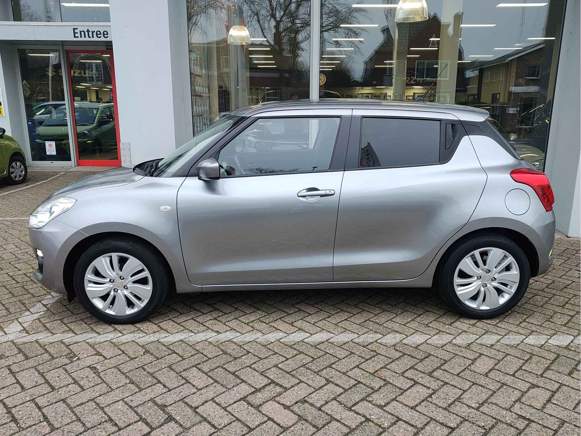 Zeer nette, origineel Nederlandse, bij ons nieuw geleverde Swift van de allereerste eigenaar, die de auto ook nog eens trouw al die jaren bij ons in onderhoud heeft laten nemen. Een technisch zeer goede wagen dus, waarbij logischerwijs ook de fabrieksgarantie tot 2028 nog intact is. Wij leveren de Swift ook rijklaar af, met een verse beurt en een nieuwe APK. Leuke uitvoering, voorzien van airco, elektrische ramen, automatische verlichting en stoelverwarming. Als extra is de auto ook nog eens uitgerust met een navigatiesysteem en een trekhaak die afneembaar is. Die laatste twee zijn normaliter niet standaard aanwezig op de Select!